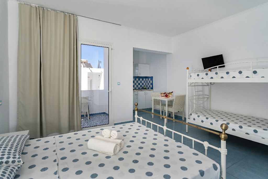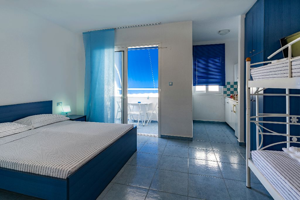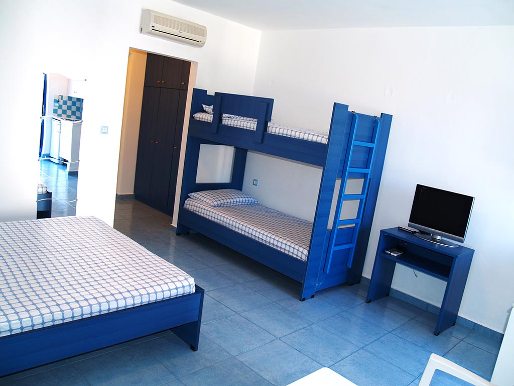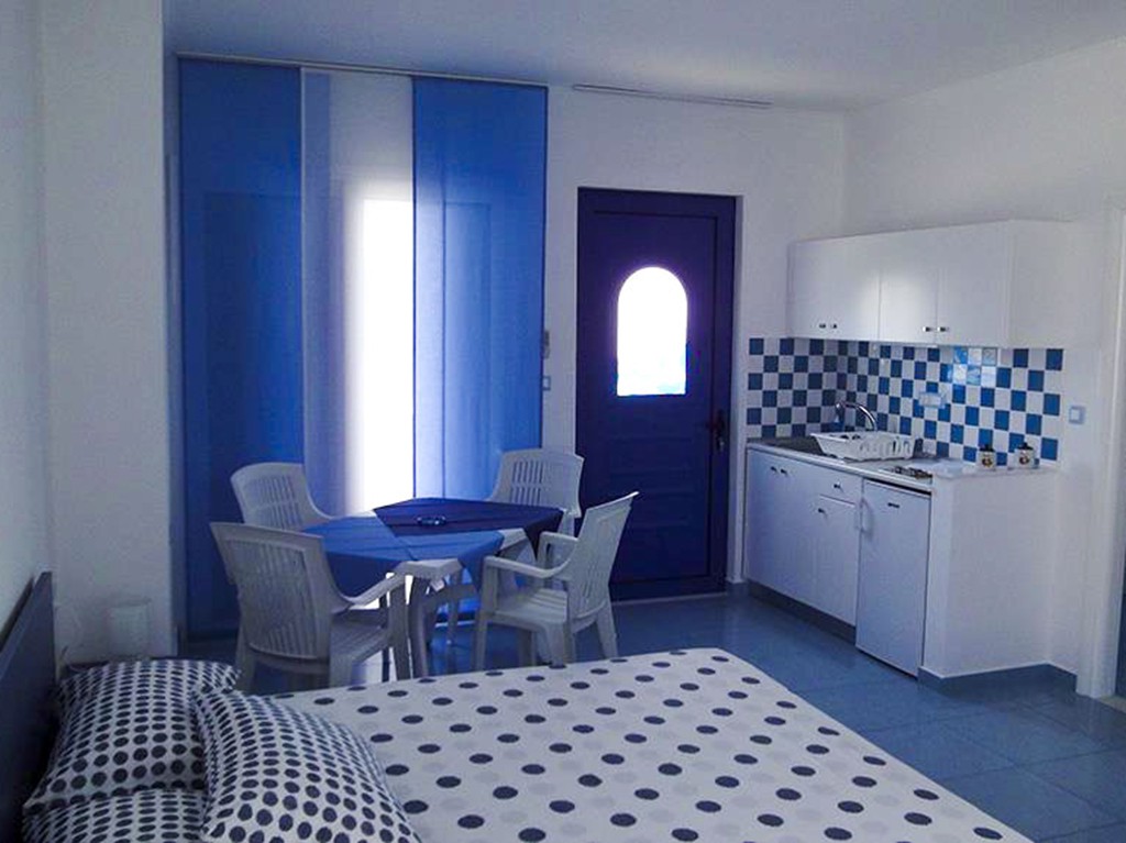 Mediterraneo Studios is located at the end of the bay, in absolute peace, walking a couple of minutes you can find small shops with the typical local products, mini-markets and the traditional Greek taverns where you can taste the local cuisine.
